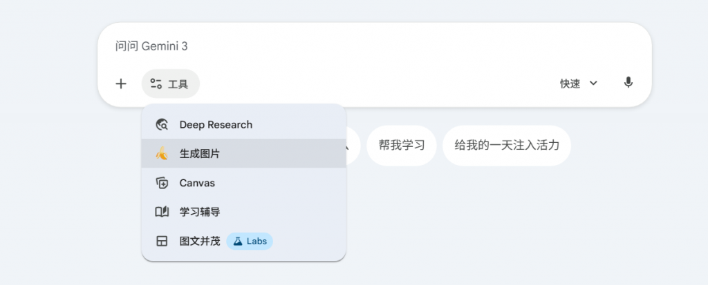 - 从模型选择菜单中选择 “生成图片”,这就是启用 Gemini 3 Nano Banana 的入口。